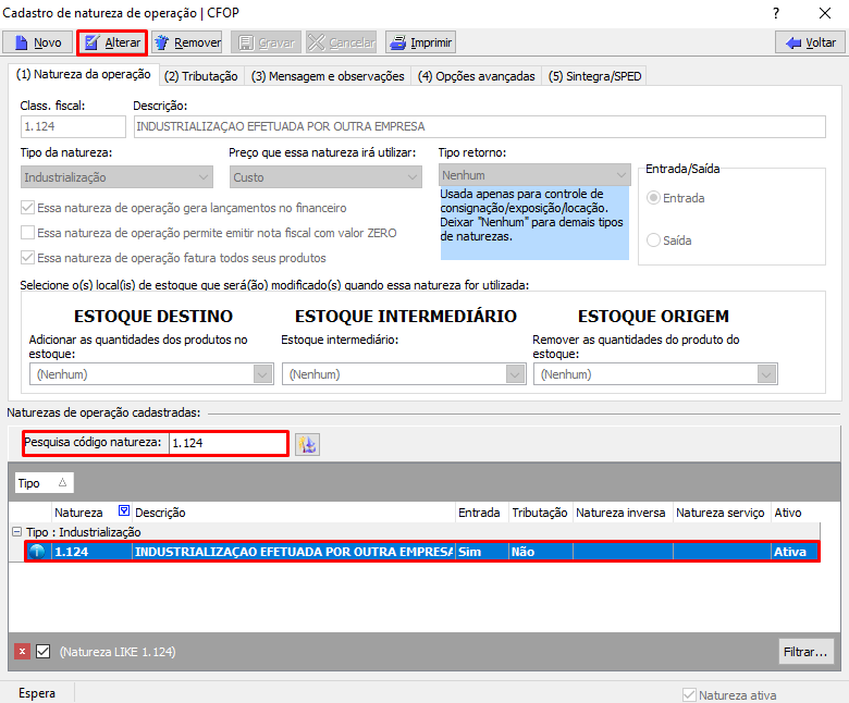 3. Utilizando a ferramenta de Natureza de operação, localize a CFOP.