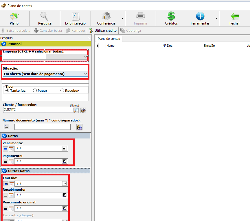 2. Através do plano de contas vamos localizar o lançamento.