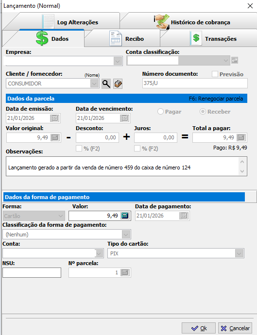Qualquer informação adicional que você possua pode ser informada, para agilizar no processo de localizar o lançamentos.