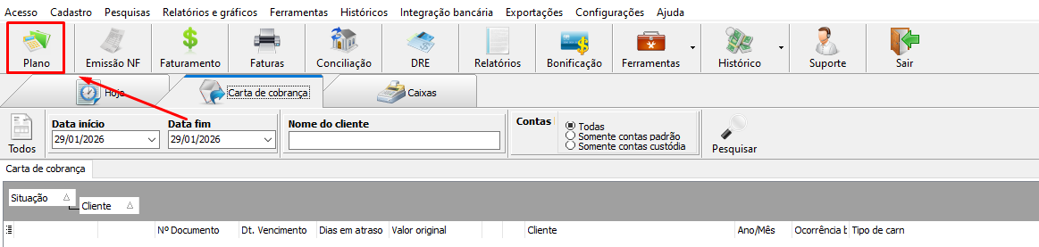 1. Vamos até o Plano de contas, clique em "Plano".