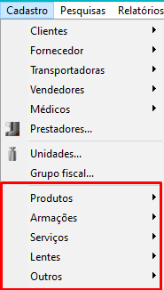 2: Vá em cadastro -----> Selecione o tipo que deseja