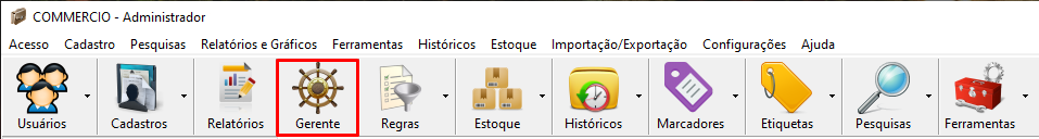 1. Para acessar o Gerente Administrativo, precisa ter as permissões liberadas.