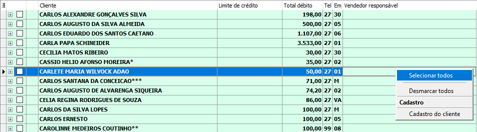 4. Ao clicar com o botão direito do mouse, é possível selecionar todos os clientes de uma só vez.