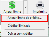 5. Após selecionar os clientes, clique em Alterar limite > Alterar limite de crédito.