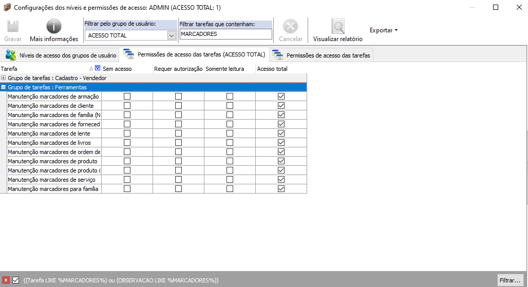 Para poder utilizar os marcadores o primeiro passo a ser realizado é ter as permissões necessárias conforme abaixo: