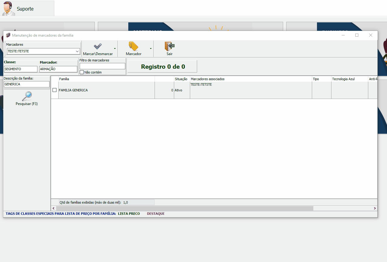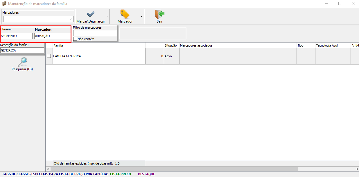 Marcadores são utilizados para agrupar produtos, lentes ou famílias e funcionam como uma TAG.